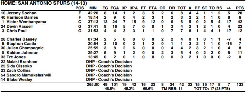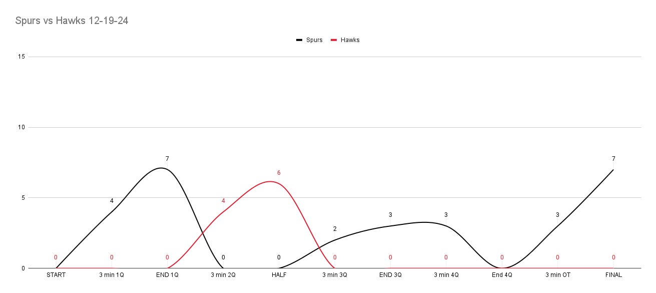48 minutes wasn’t enough to determine a winner between the Spurs and Hawks. On the final possession in the 4th, a missed Trae Young jumper contested well by Victor Wembanyama sent the Spurs to their first overtime game of the season.